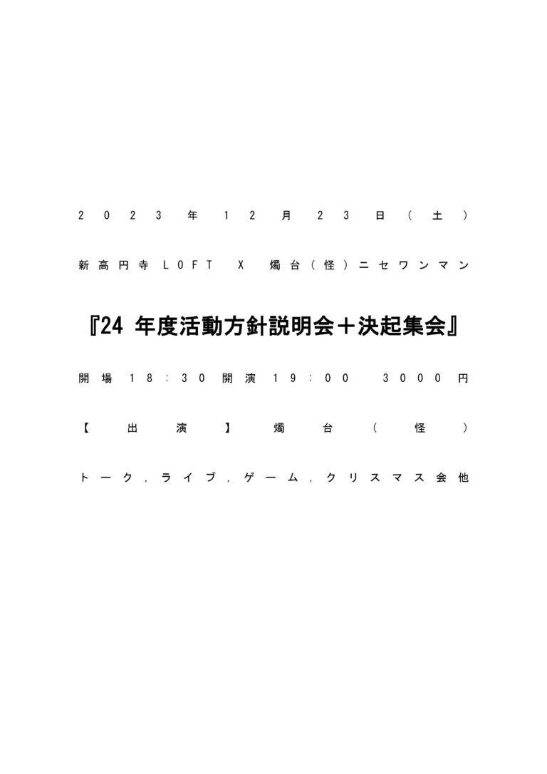 2024/8/31(土)新高円寺LOFT X 燭台(怪) 蜻蛉&ホーデン&Lyuichi生誕単独公演